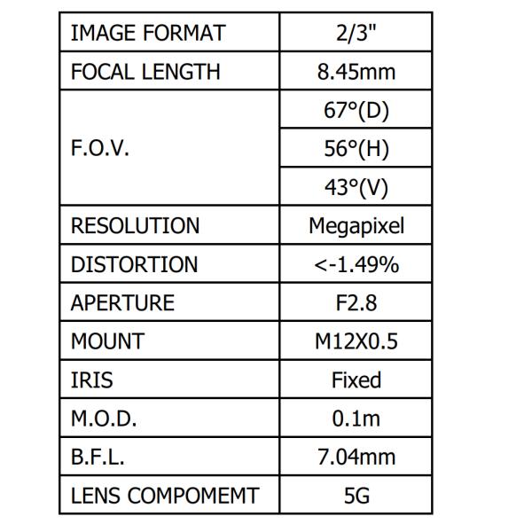 2/3" 8.45mm F2.8 ,Megapixel wide angle S mount lens ,CCL230845MP lens for low distotion application, motion capture Images |