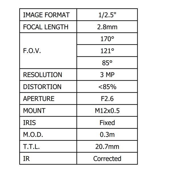 1/2.5" 2.8mm wide angle S mount lens , HFOV 121 degree, F2.6 good for Aptina MT9P031,S02812512126 Images |