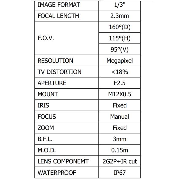 1/3" 2.3mm wide angle S mount lens , HFOV 138 degree, F2.1 good for Aptina MT9P031,CCLA13023MPF Images |